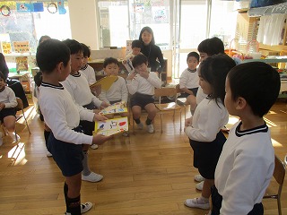 1部は、各クラスで友達と一緒にお祝いしました。友達が作ったプレゼントに、子供達はとても嬉しそうにしていました。