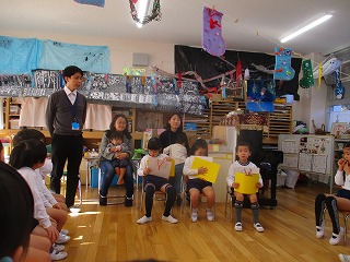5歳児そら組は、園長先生のお話を聞きました。今日のお話は、冬のスポーツのお話でした。これからますます寒くなる時期ですが、元気に過ごせるといいですね。