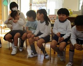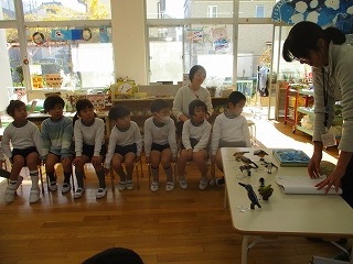 保育室にもどってからは、伊丹にいる鷹は2種類いることを教えていただきました。また、佐藤先生が数年前に昆陽池公園で見つけた羽根も見せていただき、鳥を身近に感じた子供達でした。