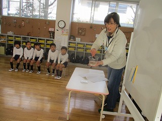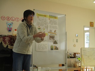 ビオトープに住んでいるヤゴは冬の間はどうしているのか、寒い冬、生き物はどんな風にすごしているのかを教えていただきました。