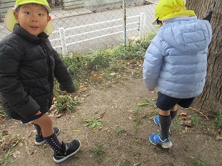 また、木々の新芽の中には、寒さから身を守るため赤くなる成分を出し、葉っぱが赤くなっていることがあることや、桜の木が7月から新芽の準備をしていることを聞いて驚いていました。また雑草などの植物は春まで、葉を地面に広げ、一枚一枚に太陽の光が当たるようにロゼットという形になって冬越しをすることを教えてもらいました。