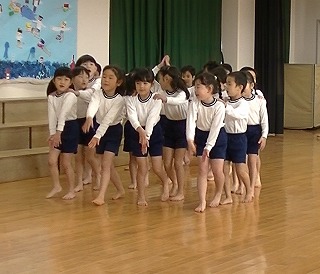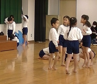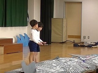 2月20日に5歳児そら組の生活発表会がありました。子供達がこの1年間、親しんできたジンベエザメを登場させたいと、自分たちでオリジナルのお話創りに挑戦しました。話し合いながら登場人物やストーリーを考え、『そら組と不思議の海のぼうけん』と題し、自分達で考えたクラゲの歌やジンベエザメの歌も披露しました。