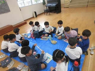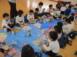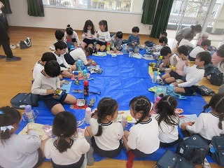 遊びの後は、遊戯室に集ってお弁当を食べ、楽しい時間を過ごしました。