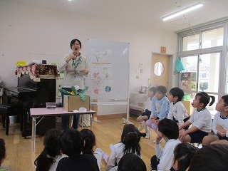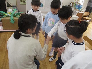 この1年で、園内の生き物や植物に触れ、自然に興味をもち、自然の面白さや不思議さを感じたこと思います。佐藤先生1年間ありがとうございました。