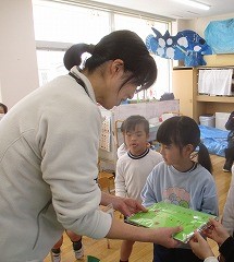 子供達も、佐藤先生へ1年間の感謝の気持ちを込めて、絵のプレゼントをしました。最後は1人1人握手で、感謝の気持ちを伝えお別れをしました。