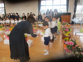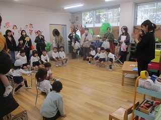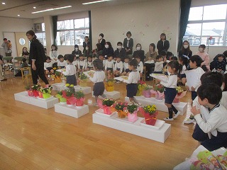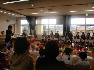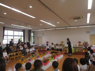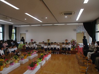 3歳児ほし組、4歳児にじ組の子供達は、保護者の皆さんや先生たちが見守る中、1年間の終わりや成長を感じ、喜び合いました。