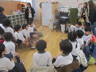 保育室で最後の話を聞き、笑顔で降園していきました。