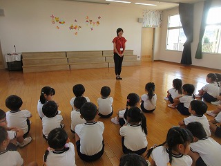園庭には大きなバッタがとびまわり、木の実も秋を待ち遠しそうにしています、