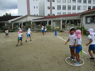 6月中旬ごろから、クラスの皆で取り組み始めました。チーム分けでは「同じ人数にしないと」と両チームの人数を数えて調整し遊びの公平性に気付いていました。また、「皆でするとちょっと怖いなぁ」「新しい遊び方、思いついた」という呟きがあると、その都度皆で「どうする?」と考えます。そして、「やってみて決めよう」と考えたこを実際にやってみて、自分たちのルールを考えることができるよう進めてきました。