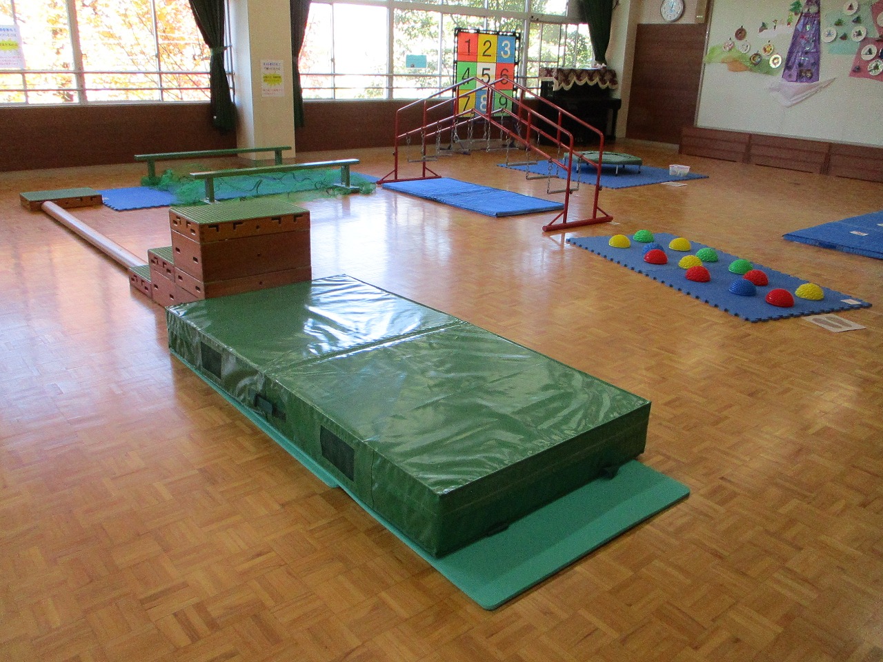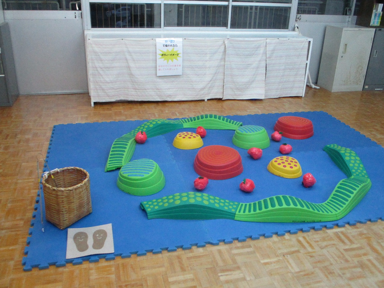 今回は、腕や脚を大きく動かして遊ぶことを楽しめるよう遊びを設定しました。