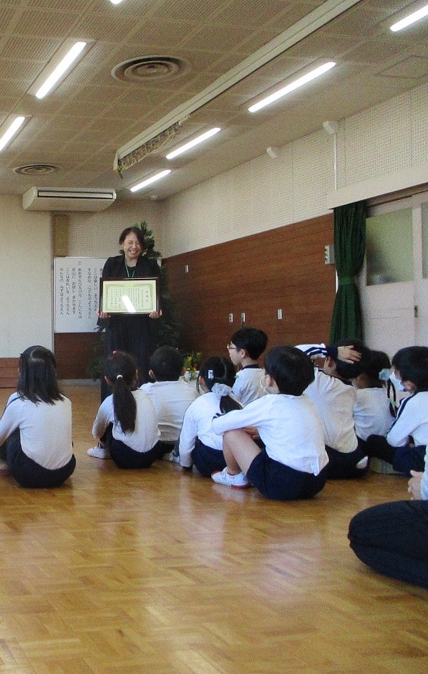 「法務局」「同和・人権・平和課」「人権擁護委員」の方々が来て下さり、感謝状をいただきました。お礼の気持ちとして幼稚園の歌を歌いました。ありがとうございました。