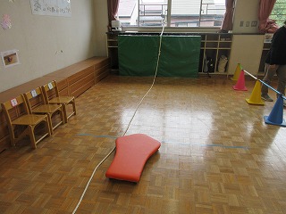 今回の広場では、子ども達が大好きなトランポリンや肋木の他に写真のような遊びを準備しました。
