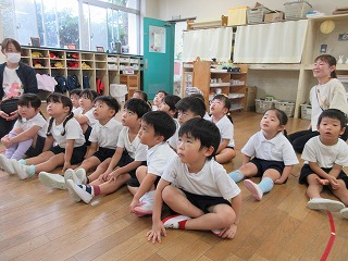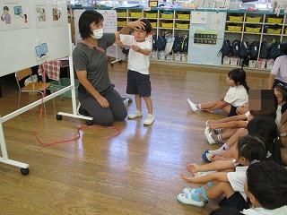 他にも3歳児では、目を休めるための体操をしたり、4歳児では実際どのくらい画面から離れるのか確認してみたり、5歳児では目にいい食べ物を紹介したりしました。