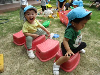 乳児の園庭でも幼児の園庭でも、力いっぱい体を動かして遊んでいます。