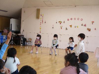 みんなの前でちょっぴり緊張気味の誕生児でしたが、ドキドキしながらも質問に答えていました。誕生会の歌や季節の歌を歌いながらあたたかい雰囲気の中でお祝いをしました。