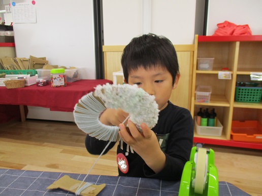 毛糸を段ボールに巻き付けて作ったりすることを楽しんでいます。