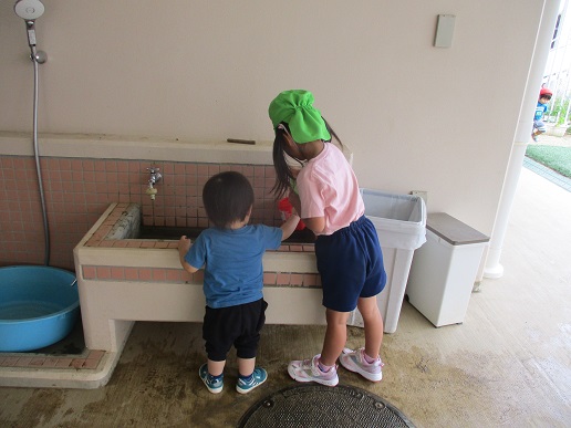 自分で水を入れようとする姿も見られるようになってきました。