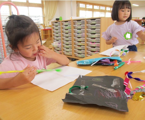 身近な素材を使って自分がイメージするものを製作することを楽しんでいる4歳児クラスの子ども達です。