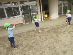 12月に入り、4歳児クラス(にじ組)も自分の縄跳びで遊ぶようになりました。