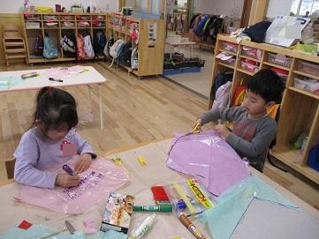 凧揚げでは、カラーポリに自分達で型をとりはさみで切ることに苦戦する姿がありました。