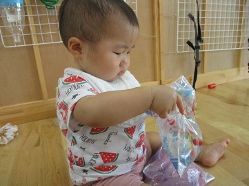 なんだか気になる・・【8月2日0歳児クラス(もも組)】
