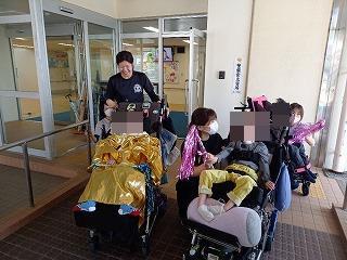 しばらく施設内を散策しました。きれいで良いところに来たね。珍しそうにキョロキョロしている人もいますよ。みんなで記念撮影をしました。