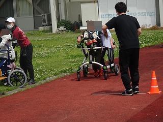 次は、団体行動の練習です。クラスごとに列をそろえて歩きます。友達の歩くペースを考えながら歩くことができ、列がそろうようになりました。さすが中学部です。