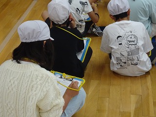 ○×クイズをしたり、メモをとったりしながら、伊丹特別支援学校のことをいろいろと知ってもらいました。体育館では小学部の体育の様子も見学されました。また、交流などの機会には、よろしくお願いしますね!