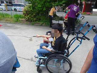 みんな、ねらいを定めて火の的に水を当てることができました。いざという時に、自分がどんな風に行動すれば良いのかを普段から考えておくことは、大切ですね。荒牧出張所の消防士の皆さん、ありがとうございました。