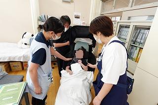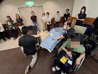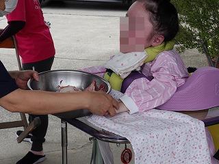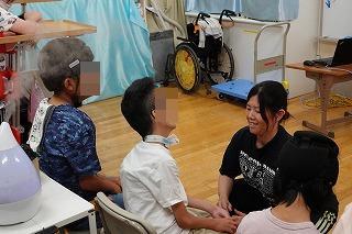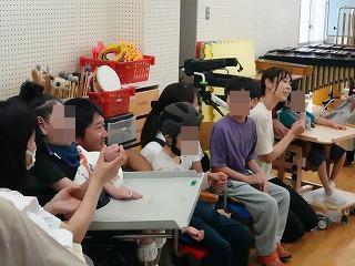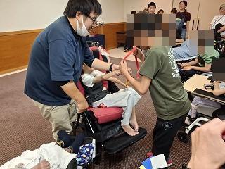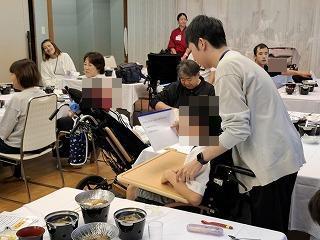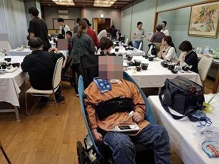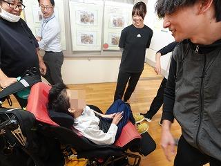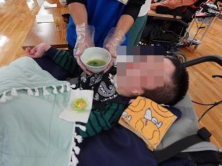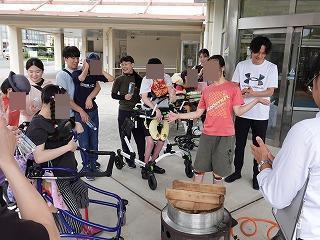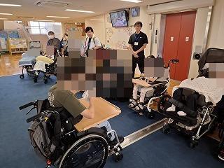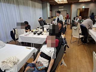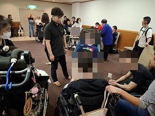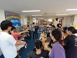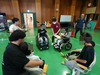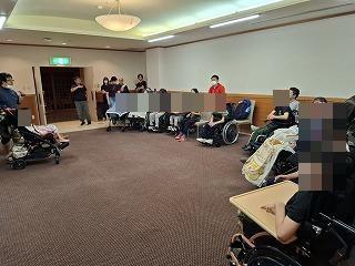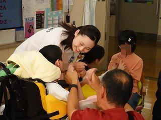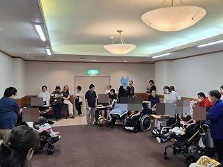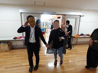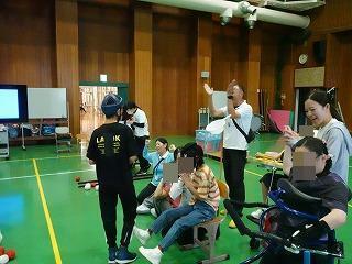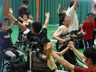 自己紹介の後は、西宮支援学校の『西養音頭』をみんなで踊りました。最初は先生たちに見本を見せていただきました。以前に西宮支援学校で勤めておられた先生たちもかり出されていました。輪になって手をつなぐところやみんなで手拍子をするところがあって、素敵な踊りでした。一気に仲良くなれた気がしました。