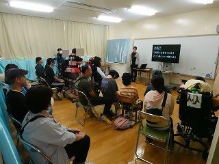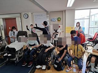 高等部の生徒9名が、学校間交流で西宮市立西宮支援学校を訪問しました。まずは自己紹介です。緊張しながらも、自分の名前や好きな物などをしっかりと発表しました。