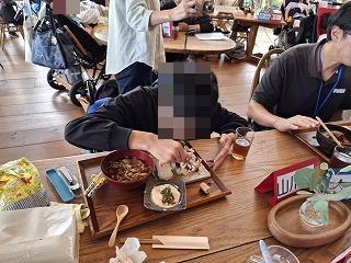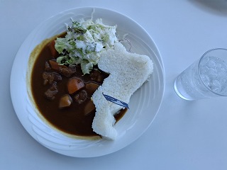 昼食はもちろん琵琶湖カレーです。さて、お味はどうかな?感想を聞くと、とても美味しいそうです。少し辛いかと思いましたが、辛さもちょうど良いそうです。
