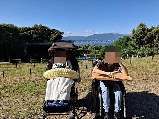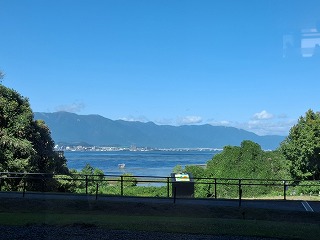 とってもきれいな景色です。遠くに琵琶湖大橋も見えますよ!いい天気だね。