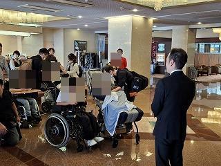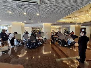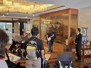 ホテルの退館式です。きれいなお部屋やお風呂、おいしい食事で快適に過ごせました。お世話になりました!