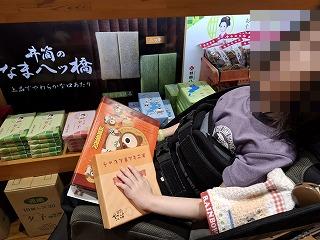 お風呂を待つ間に、売店でお土産を選びました。家族に喜んでもらえる物がいいね。でも、たくさんあって迷っちゃうね。