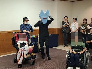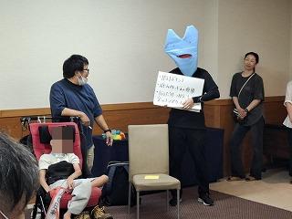 夜のつどいが始まりました。クイズ大会の前には何とスペシャルゲストが登場!少し引いている人もいましたが、大いに盛り上がりました!