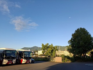 修学旅行2日目の朝です。少し寝不足の人もいるようですが、みんな元気です。今日もとても良い天気で、暑くなりそうです。