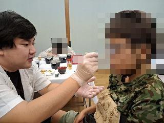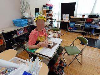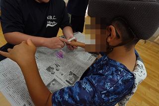 今日は、プラ板制作に挑戦します。高等部の生徒は経験済みなので、後輩たちに見本を見せてくれます。中学部の生徒も一生懸命に取り組みました。