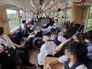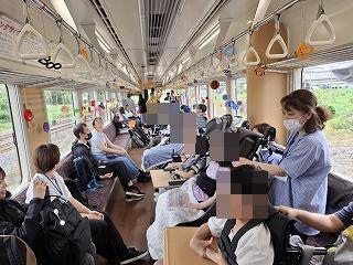 楽しい列車の旅が始まりました。ほとんど1両を貸し切り状態にしていただきました。車窓を眺める子どもたちも笑顔になります。