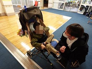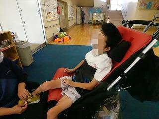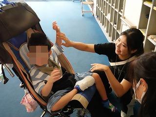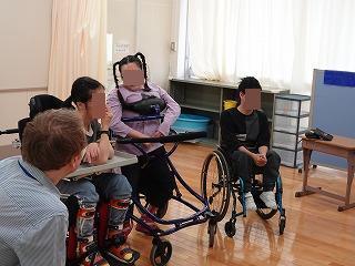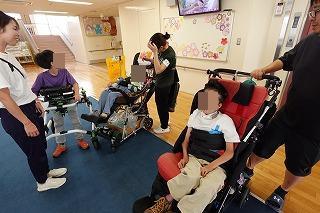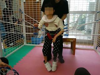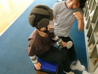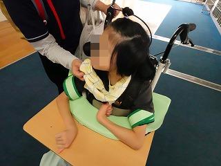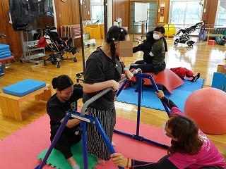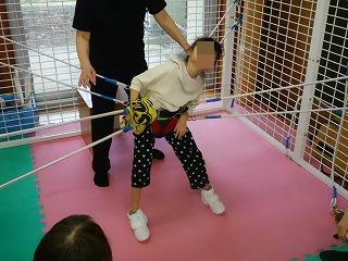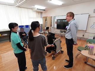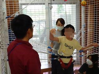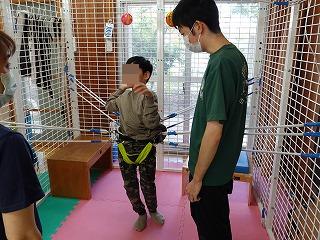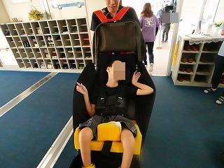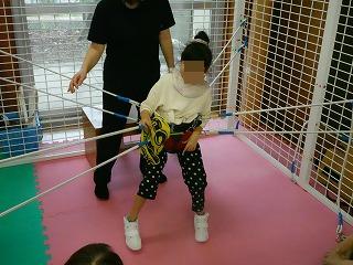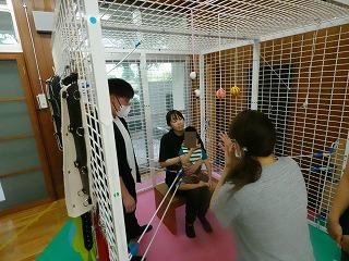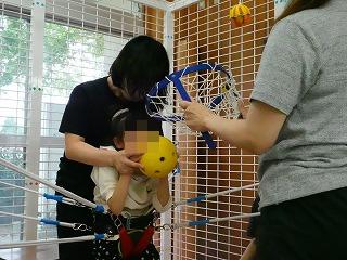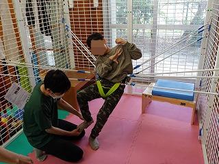 アクティブルームを訪れると、ニコニコ笑顔の子どもたちを発見!「スパイダー」という身体の負荷を減らし、様々な動きに挑戦する器具を用いて学習をしていました。専門の先生にご指導いただき、いろいろと教えていただきました。