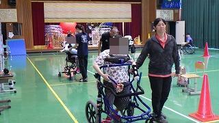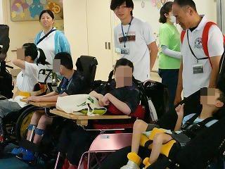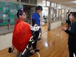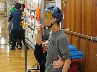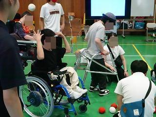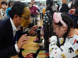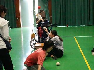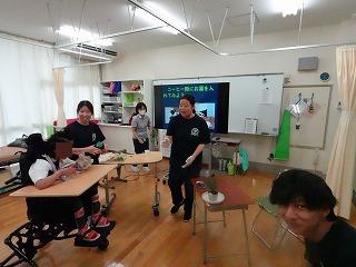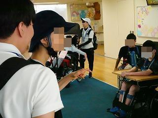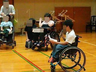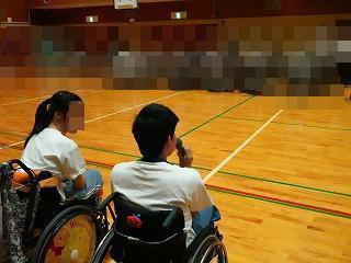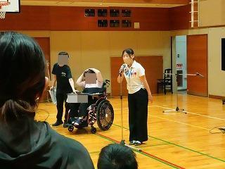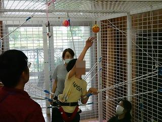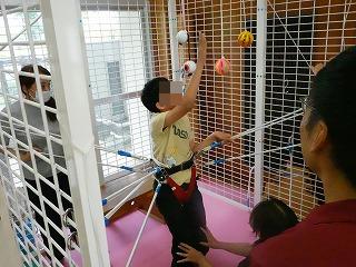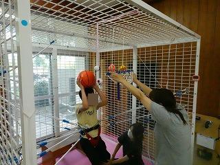 小学部の児童に続いて中学部の生徒も挑戦しました。どんどん高くなっていく目標物にタッチしたり、豪快なダンクシュートを決めたり、意欲的に取り組んでいました。終わった後の「あ~楽しかった!」という言葉がとても印象的でした。