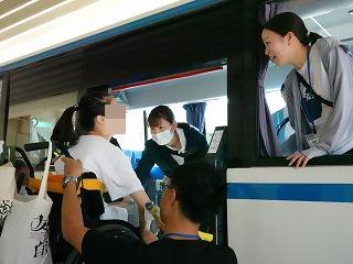出発前の生徒たちはとてもうれしそうです。市立伊丹高校では、体育祭を見学したり、借り物競走に参加したりするようです。同世代の仲間たちと一緒に楽しんできてくださいね。