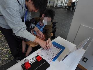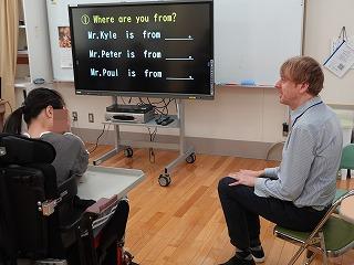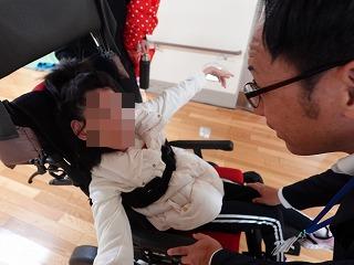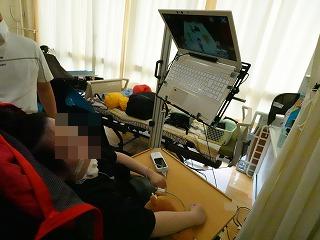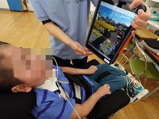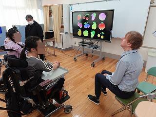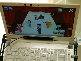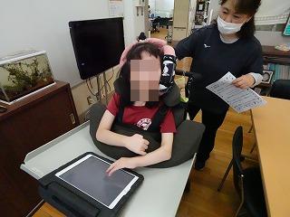 中学部の生徒が視線入力に取り組みました。視線を動かして、画面上の様々な楽器を演奏するというものです。最初の方は、気に入った音なのか同じ楽器ばかり演奏していましたが、「こっちの楽器の音も聴きたいな。」とリクエストすると、しっかり要望に応えてくれました。最後は視線を大きく動かして、様々な楽器の音を聴かせてくれました。