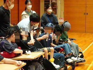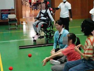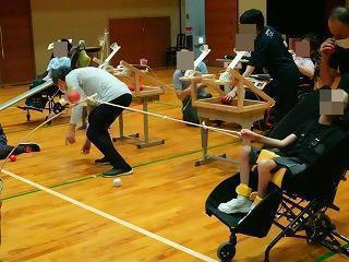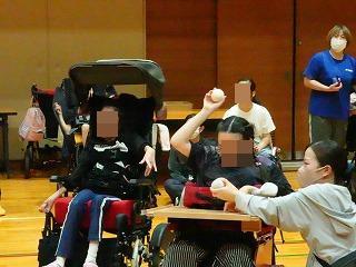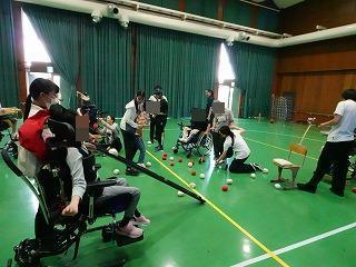 みんな、玉を手で持って投げたり、レールを転がしたり、器械で飛ばしたり、様々な方法で取り組みました。さて、どちらが勝ったかな?みんなで数えました。「紅組の勝ち!」の声の後、歓声が上がりました。学校間交流でも、西宮支援学校の皆さんと一緒に楽しめたら良いですね。
