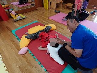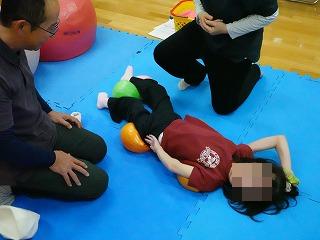 中学部と小学部の児童・生徒が、FBM(ファシリテーション・ボール・メソッド)に取り組みました。講師の先生に来ていただき、担任の先生と一緒に教えていただきました。柔らかいバランスボールの上に乗りながら、からだをゆるめたり、伸ばしたり、動かしたり・・・。こどもたちの表情がとても良い表情になります。自分で自分のからだを自由に動かせるという喜びを感じているようでした。
