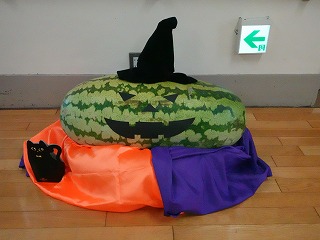 今朝は秋晴れの爽やかなお天気です。玄関では『ハロウィンカボチャ』ならぬ『ハロウィンスイカ』がお出迎えです。明日は、市内の小学校何校かで体育大会が開催されます。交流で参加する児童に「明日、頑張ってね!」「応援してるからね!」と、いろんな先生たちが声をかけていました。