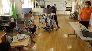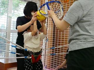 子どもたちは、軽くなった自分の身体を自由に動かして、バスケットのシュートや音楽に合わせての行進などに取り組みました。その表情が生き生きとしていて、見ているこちらも嬉しくなりました。子どもたちは自分の身体を自由に動かせる喜びを感じているようでした。