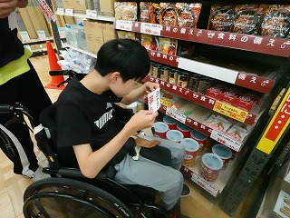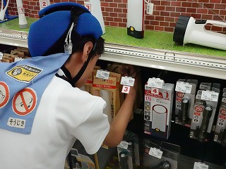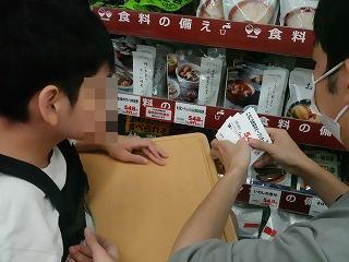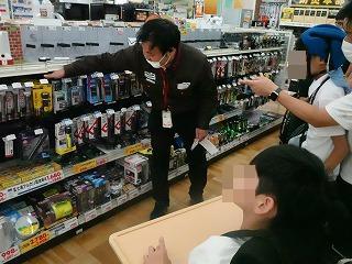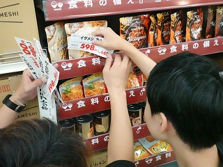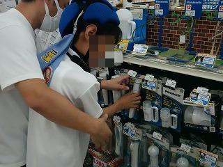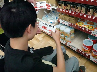 お店の人からの説明を受けて、実際に店頭で作業をします。「前出し」といって、商品を前に出して綺麗に並べる作業や、商品棚の表示札をつけていく作業をさせていただきました。