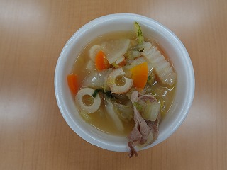 今日は、災害時の炊き出し訓練でした。みんなで作った豚汁は具だくさんで、とてもおいしかったです。みんなパクパクと、たくさん食べていました。