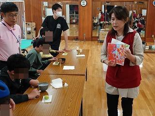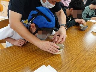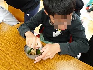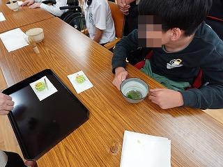 中学部1組の生徒たちが、「みどり園」の方に来ていただき、お抹茶を点てる体験をさせていただきました。お抹茶を点てるときは、手をかなり激しく動かして、泡立てるようにするようです。生徒たちもやってみました。